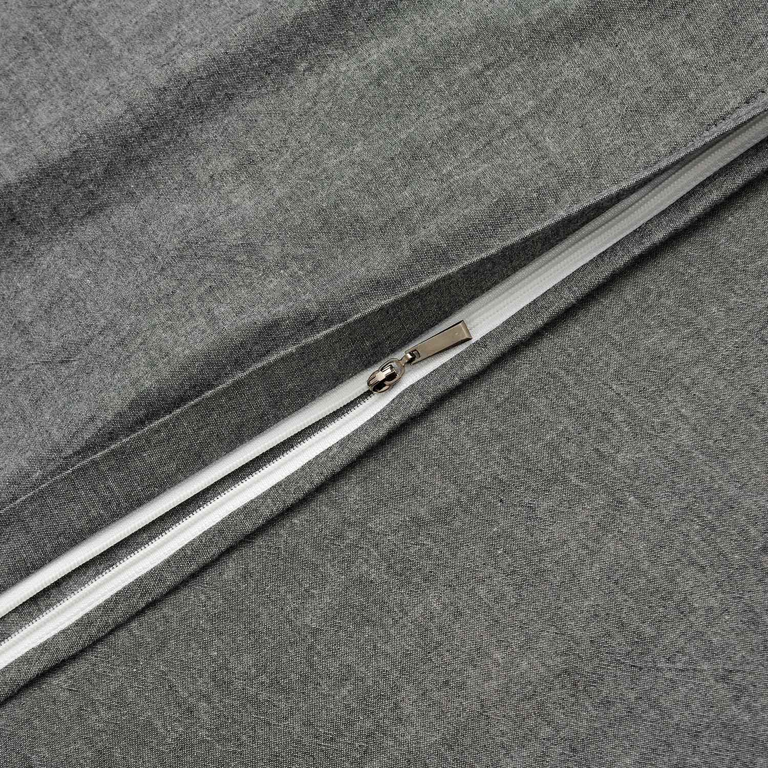 Пододеяльник застёгивается на молнию по всей длине. Наволочки украшены декоративными складками и имеют широкий клапан с обратной стороны — их можно использовать с обеих сторон. Внутри пододеяльника предусмотрены тесемки для надёжной фиксации одеяла.