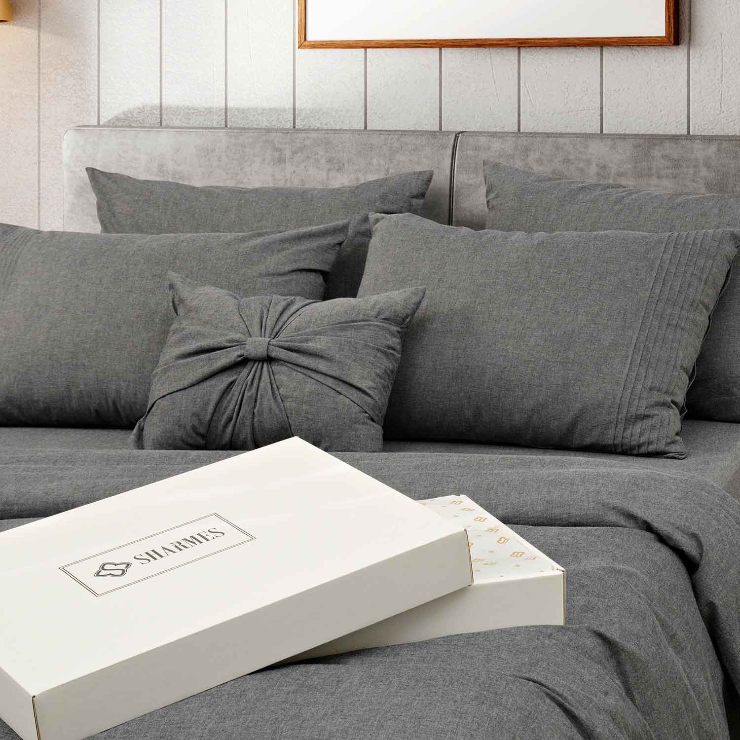 Постельное бельё «Сканди» в цвете графит от Sharmes — это идеальное сочетание комфорта, стиля и практичности.