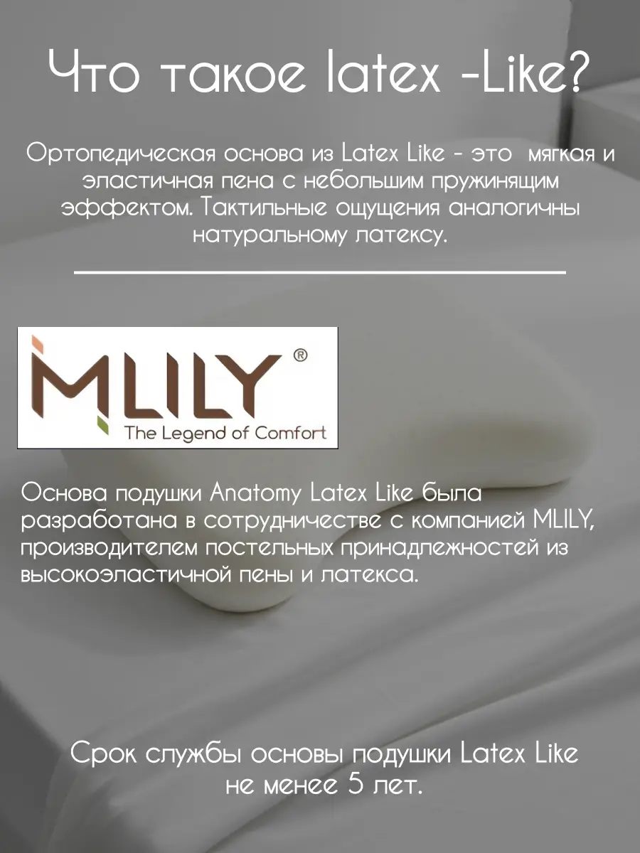 Откройте для себя инновационное решение для комфортного сна — Anatomia Latex Like, первую гибридную анатомическую подушку от OnSilk. Эта уникальная модель сочетает в себе ортопедическую основу плечевой формы из эластичной пены Latex Like, которая по тактильным ощущениям не уступает натуральному латексу, и мягкий съемный чехол. Чехол наполнен натуральным шелком Малбери с добавлением силиконизированного волокна, что обеспечивает превосходную терморегуляцию и особый комфорт.